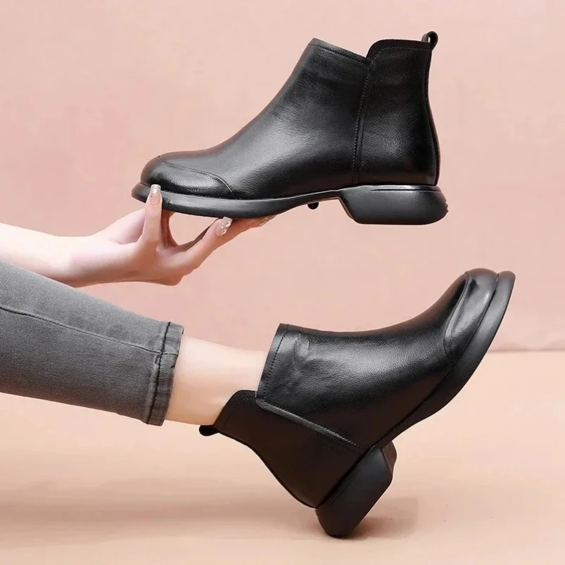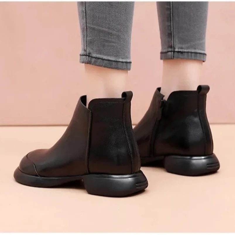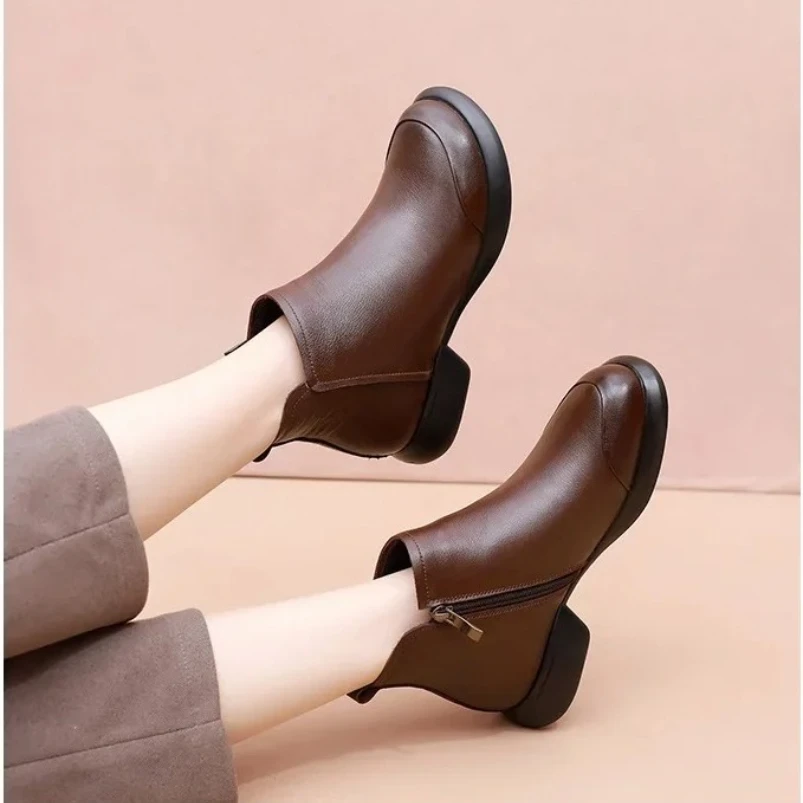 2025 New In Women’s Boots 3cm Retro Natural Genuine Leather Snow Ankle Flats Autumn Winter Zip Women Soft Rubber Plush Shoes