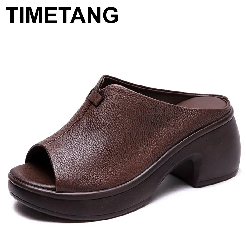 2025 Woman platform thongs new summer women genuine leather slipper high heel shoes women slippers