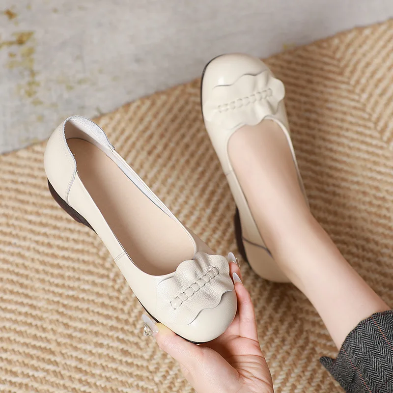TIMETANGWomen Shoes Handmade Genuine Leather Casual Shoes Women Floral Solid Flat Shoes Vintage Cow Leather Loafers S Woman