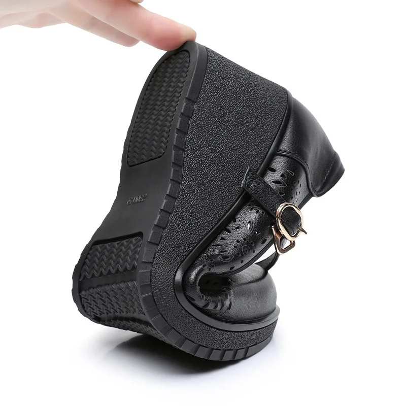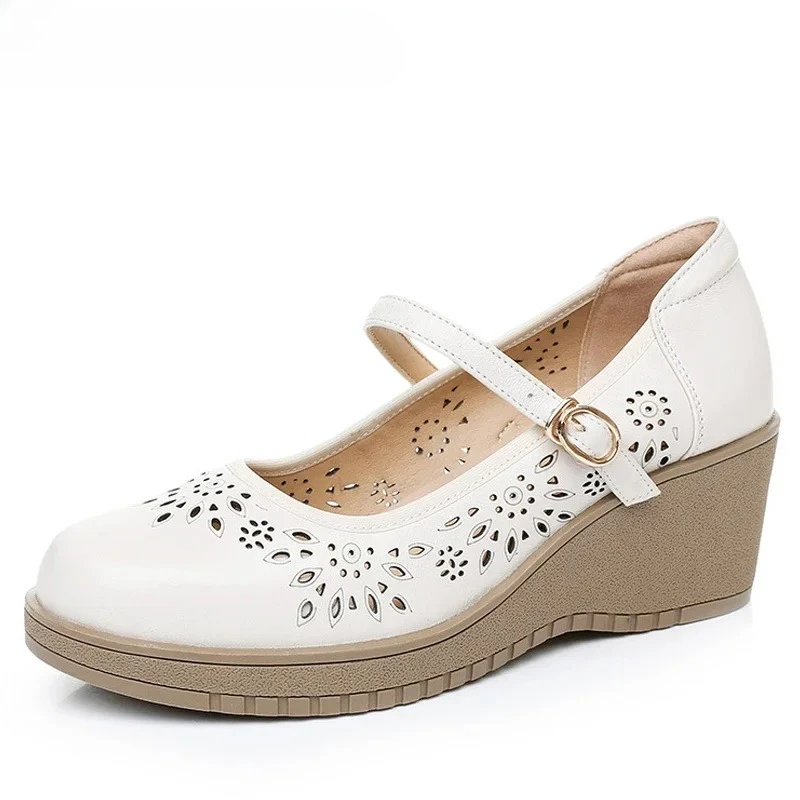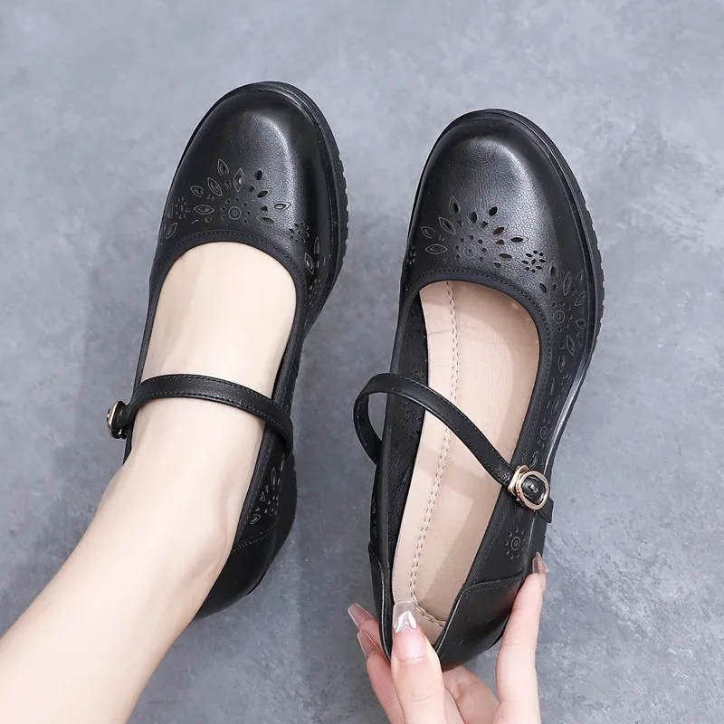 2025 Women Summer Sandals Outdoor Genuine Leather Casual Mom Shoes Females Retro Lace-up Flats Loafers Woman Plus Size 35-41