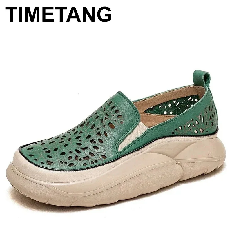 TIMETANG Genuine Leather Shoes Women Solid Loafers Women Flats Ballet Spring Summer Flat Shoes Woman Moccasins Factory Outlet