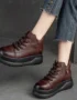 2025 Vintage Pumps Elderly Genuine Leather Shoes Ladies Medium Heels Pumps Mom Red Block Heel Shoes Womens Pumps Round Toe