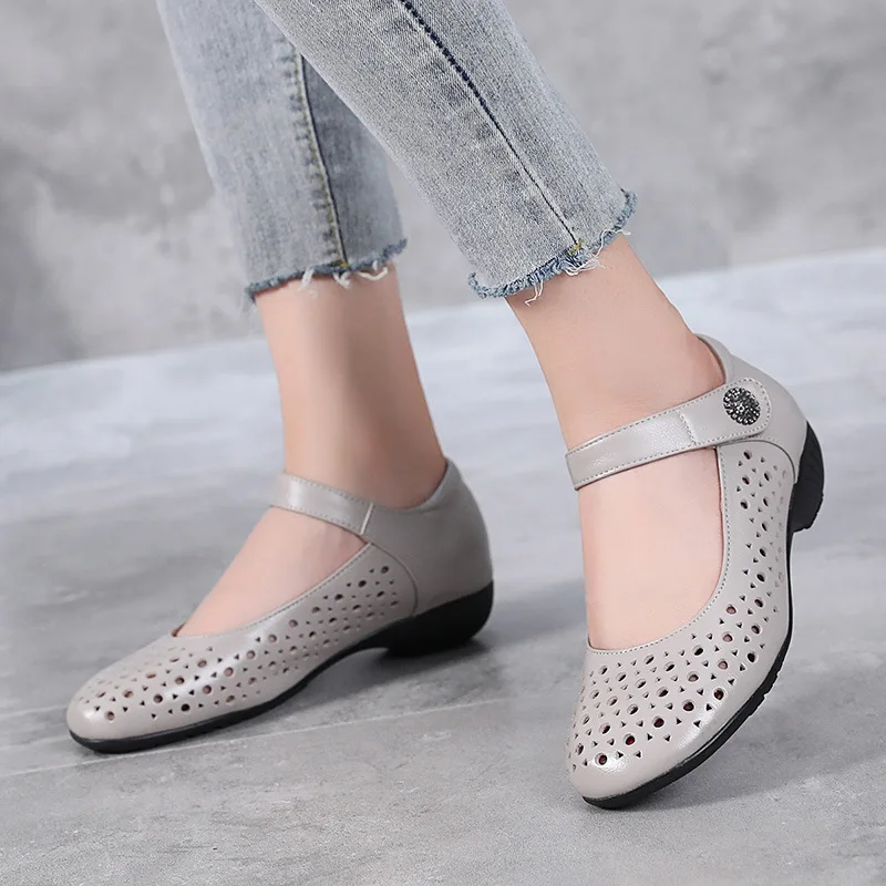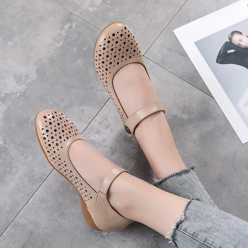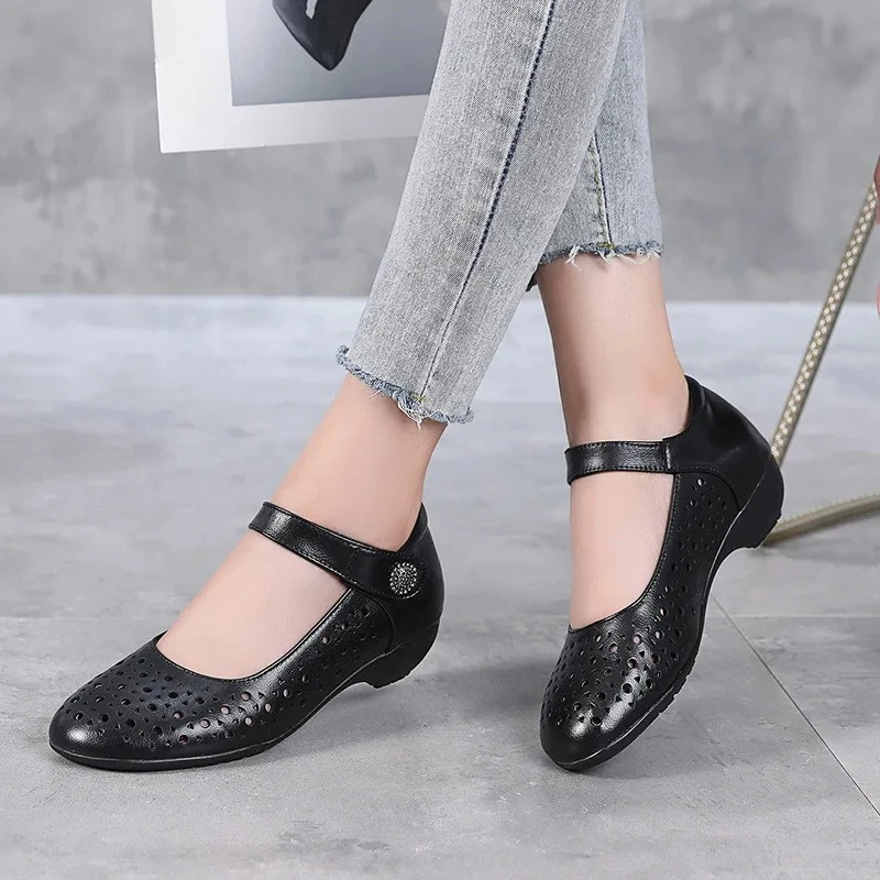 2025 Genuine Leather Sandals Female Summer New Large Size Fish Mouth Sandals Middle-aged Non-slip Mother Shoes