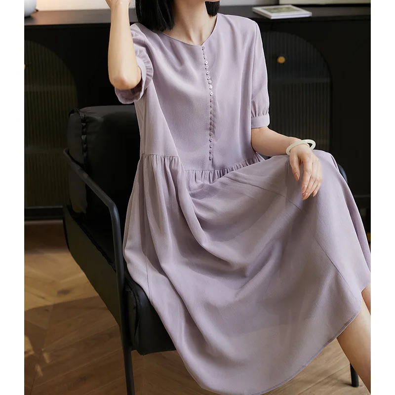 AYUNSUE Heavyweight Crepe Mulberry Silk Dress Woman Elegant Summer Dresses 2026 Flowing A-line Dresses Woman Clothes Vestidos