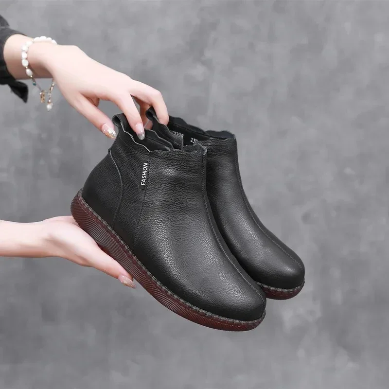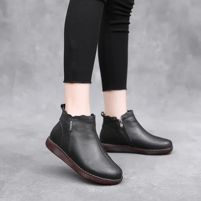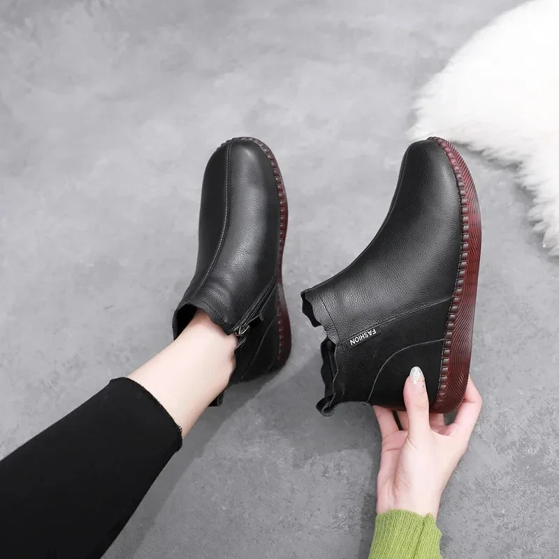 2025 Genuine Leather Marton Boots Women Winter New Double Zipper Women's Ankle Boots Platform Thick Heel Motorcycle Boots Women