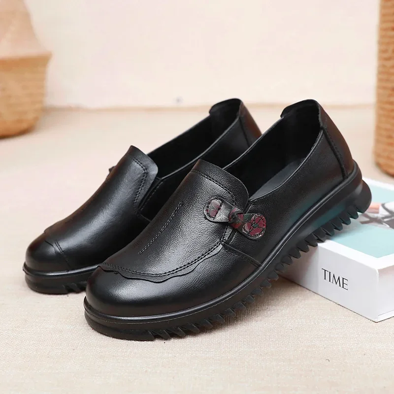 2025 Genuine leather bean shoes for women in spring new soft soled small white shoes, non-slip casual small leather shoes