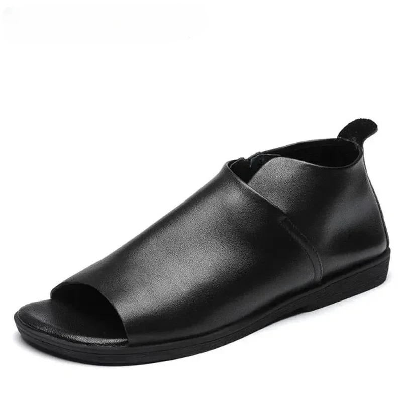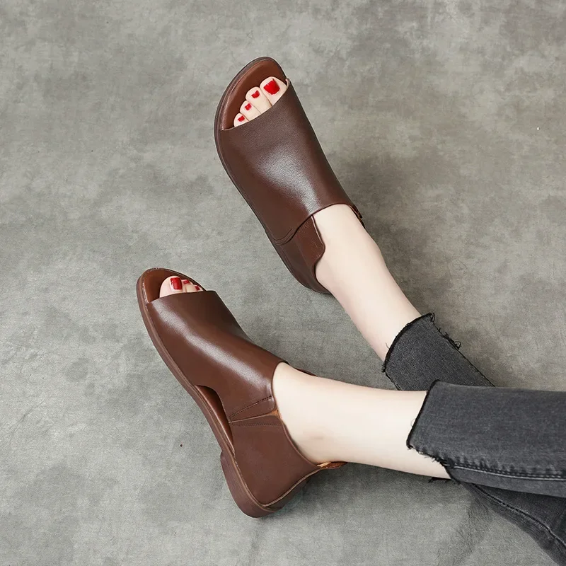 2025 Genuine Leather Ladies Flats Summer Shoes Woman Plus Size Loafers Hollow Round Toe Soft Comfort Sandals Female