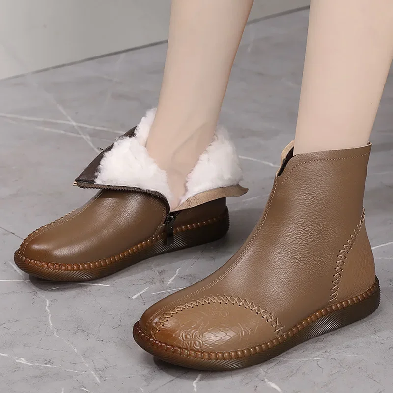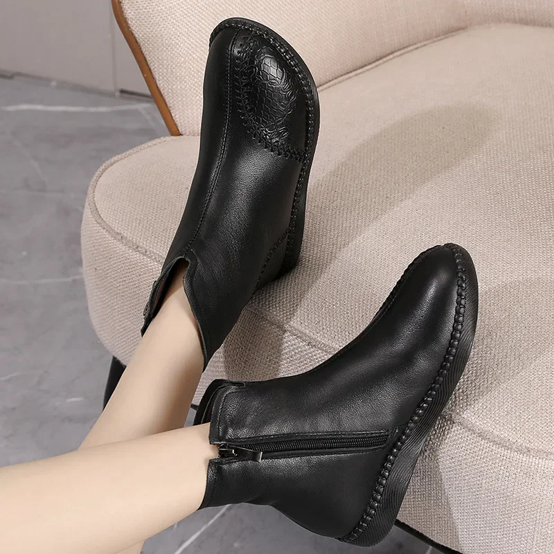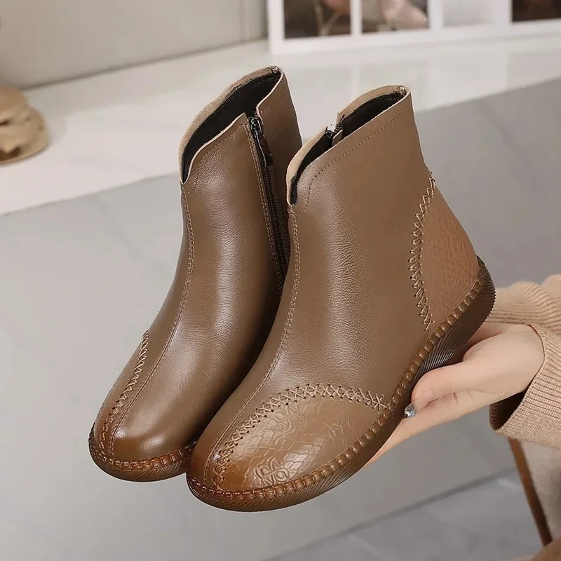 2025 Vintage Pumps Elderly Genuine Leather Shoes Ladies Medium Heels Pumps Mom Red Block Heel Shoes Womens Pumps Round Toe
