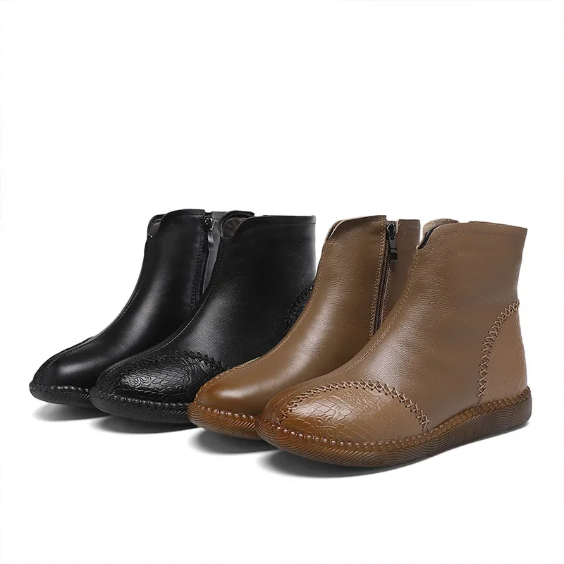 2025 Women Shoes Platform Sandals Genuine Leather New Buckle Strap Print Retro Handmade Concise Leisure Ladies Sandals