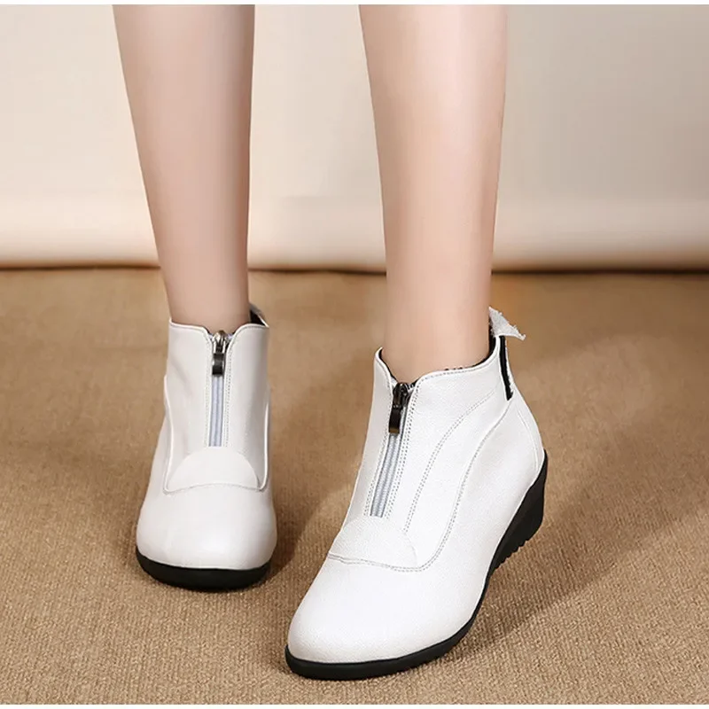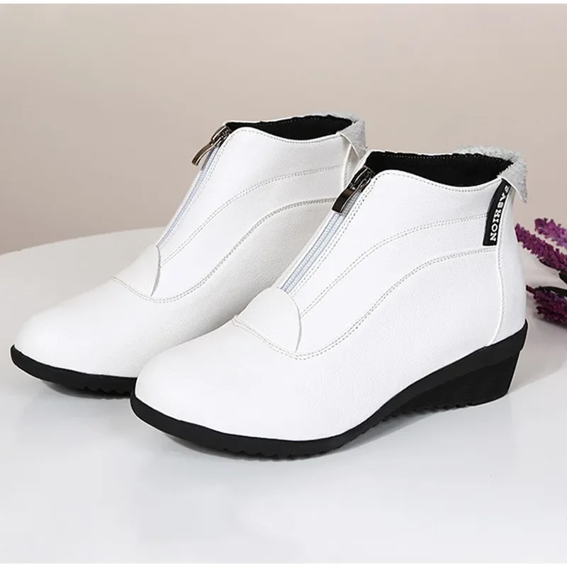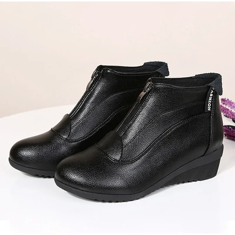 TIMETANG Women Zipper Ankle Boots Ladies Warm Winter Short Plush Short Boot Female Non Slip Pu Leather Shoes Comfort Soft Shoe