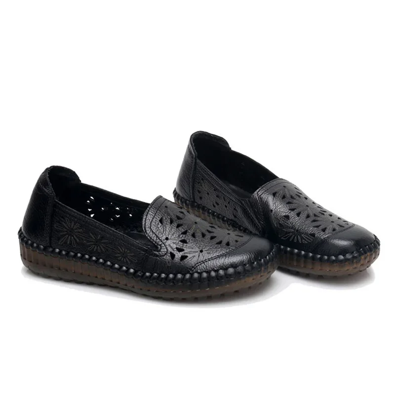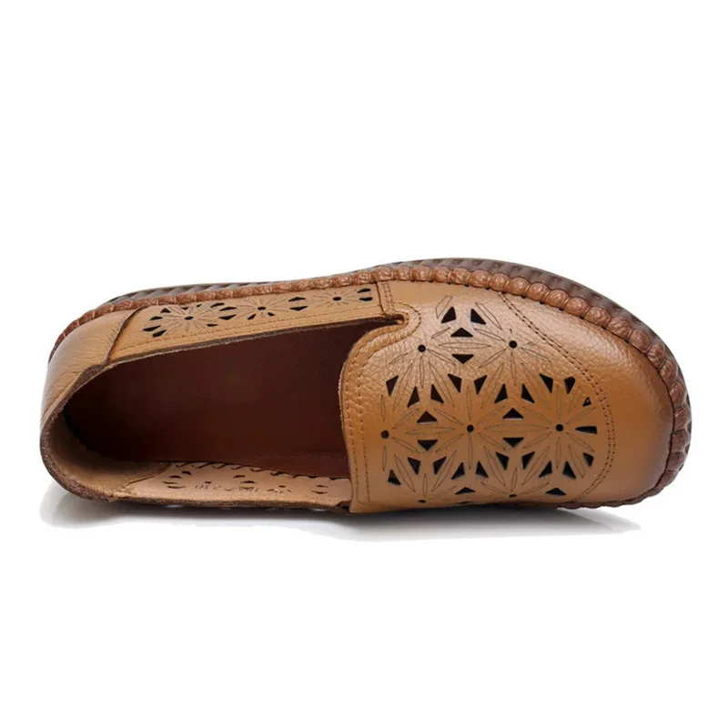 2025 Genuine Leather Women Shoes Casual Flower Single Flat Round Toe Style Boat Shoes Soft Comfortable Women Flats