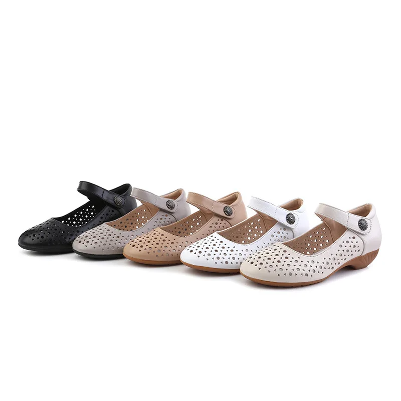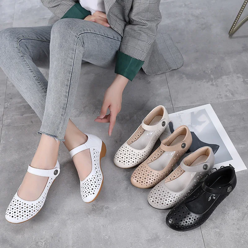 2025 Genuine Leather Sandals Female Summer New Large Size Fish Mouth Sandals Middle-aged Non-slip Mother Shoes