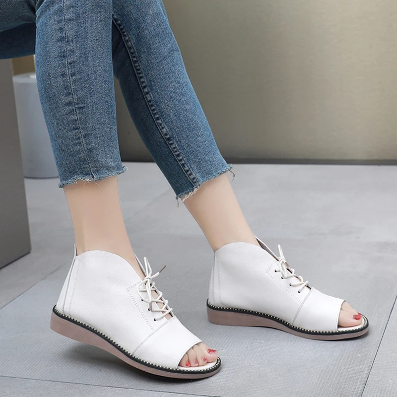 2025 High Top Sandals For Women Open Toe Summer Boots Luxury Lace Up Beach Sandals Genuine Leather Flats Shoes