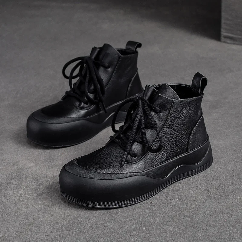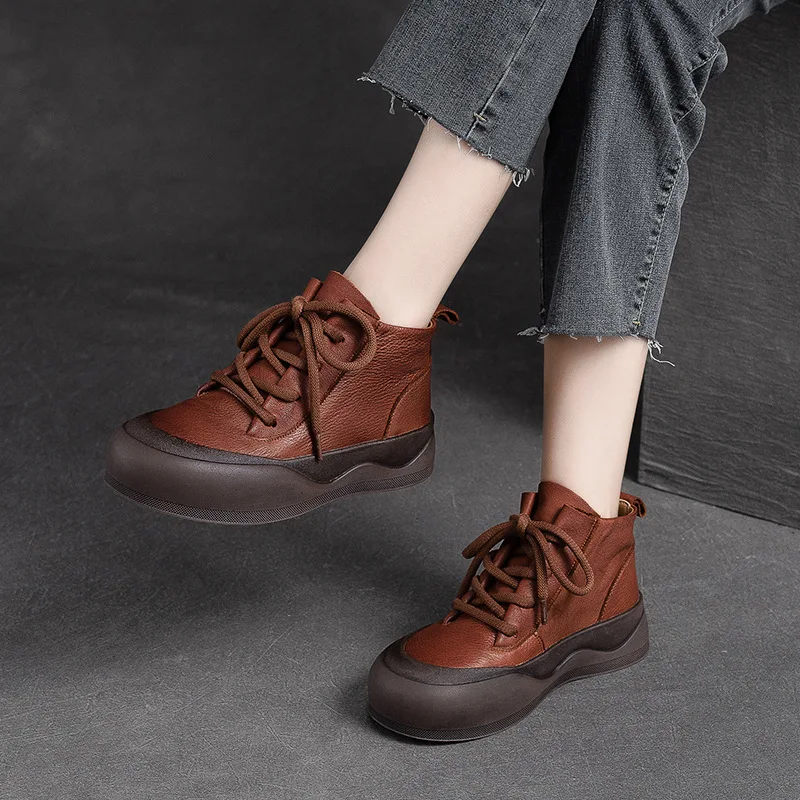 2025 Round Toe Lace Up Women Thick Soles Short Boots Casual Autumn Winter Simple Versatile Flat Platform Shoes