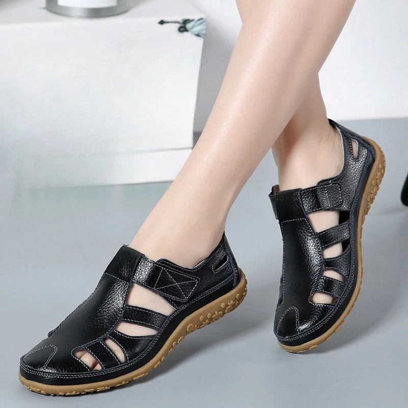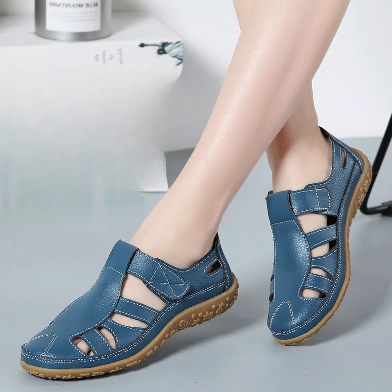 2025 Women Summer Sandals Outdoor Genuine Leather Casual Mom Shoes Females Retro Lace-up Flats Loafers Woman Plus Size 35-41